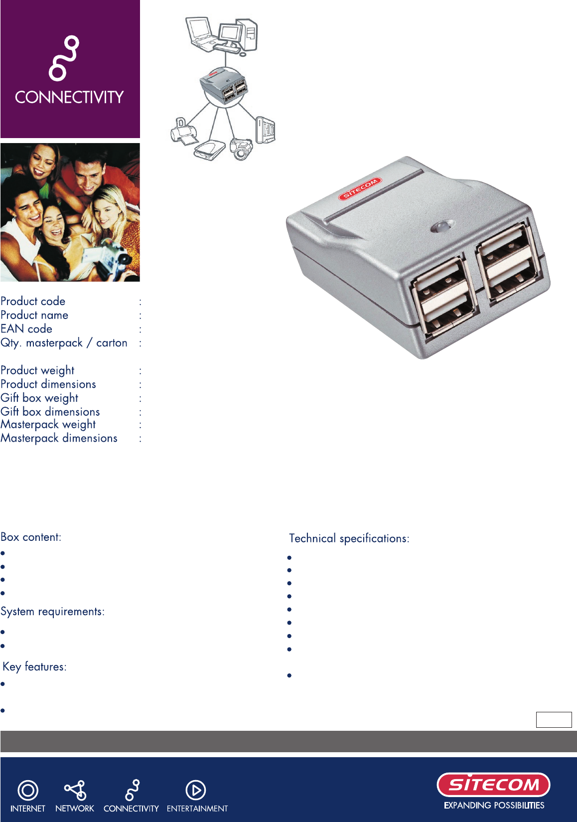 Przeglądaj online lub pobierz Arkusz Danych dla Koncentratory interfejsów Sitecom CN-034. Sitecom USB 2.0 Hub 4-port w/pa Instrukcja obsługi