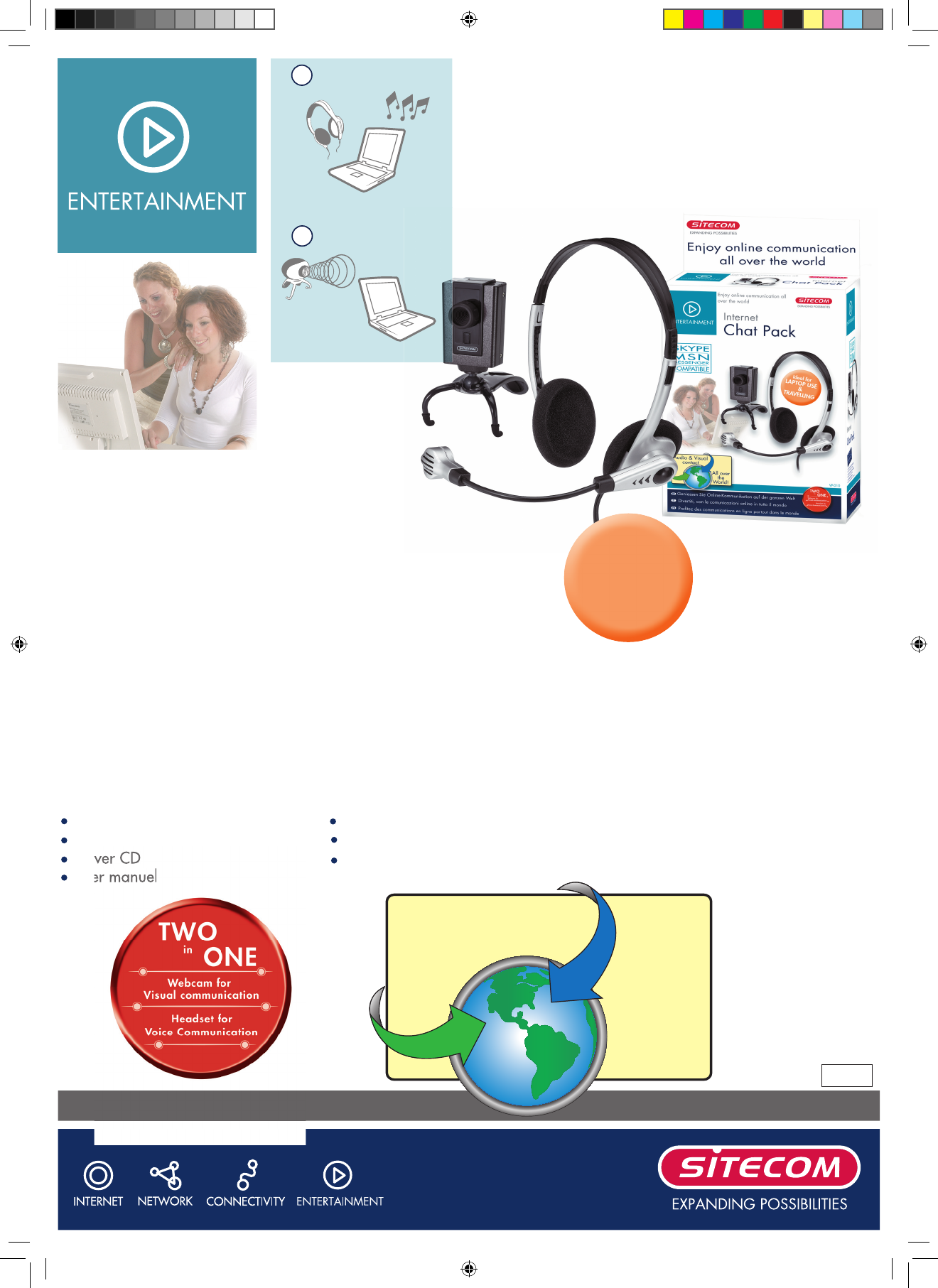 This Chat Pack guarantees uninterrupted online chatting! Connect the webcam and headset